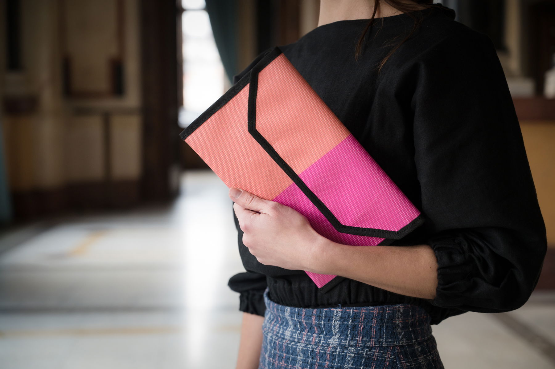 Rozzářit outfit i chodby Rudolfina zvládnou naše upcyklovaná psaníčka a taštičky z bannerů minulých sezon. Sladit tón outfitu můžete také hedvábnými šátky či kapesníky s motivy nástrojů. Stačí se porozhlédnout na našem e-shopu nebo v kamenném Rudolfinum shopu.